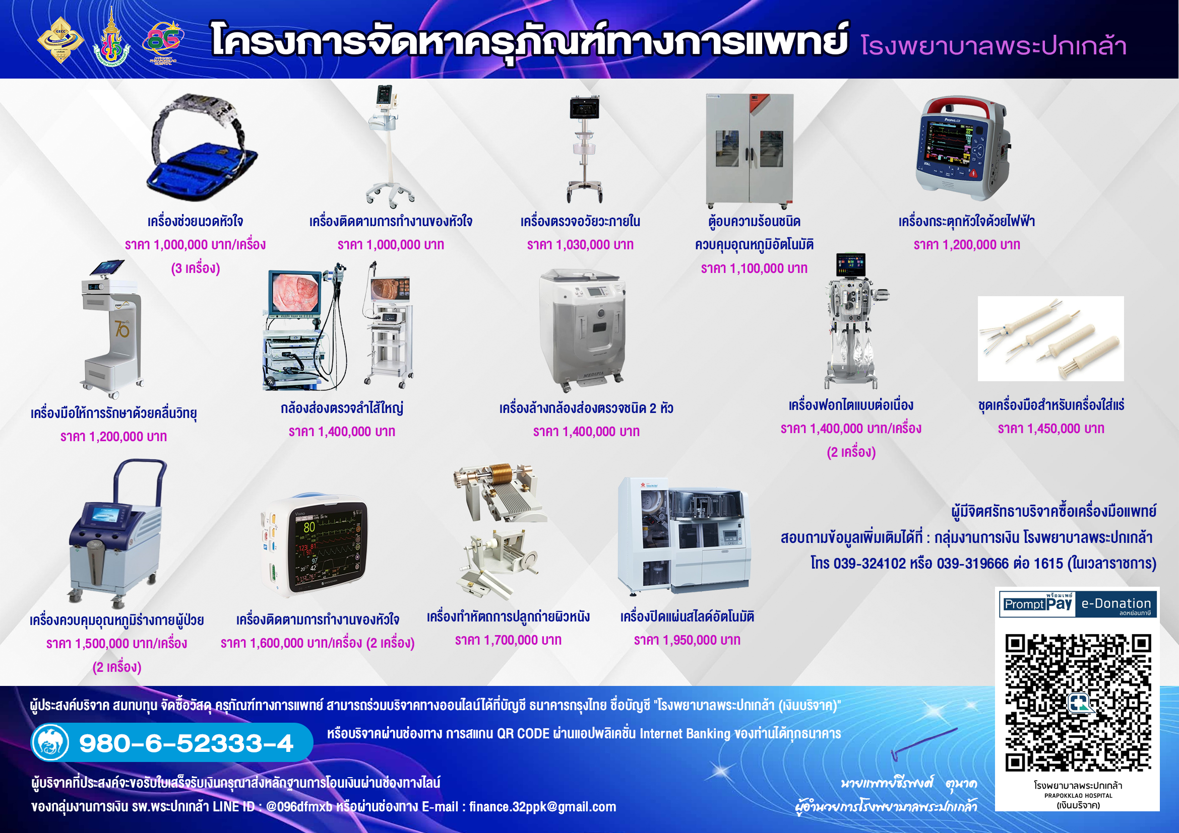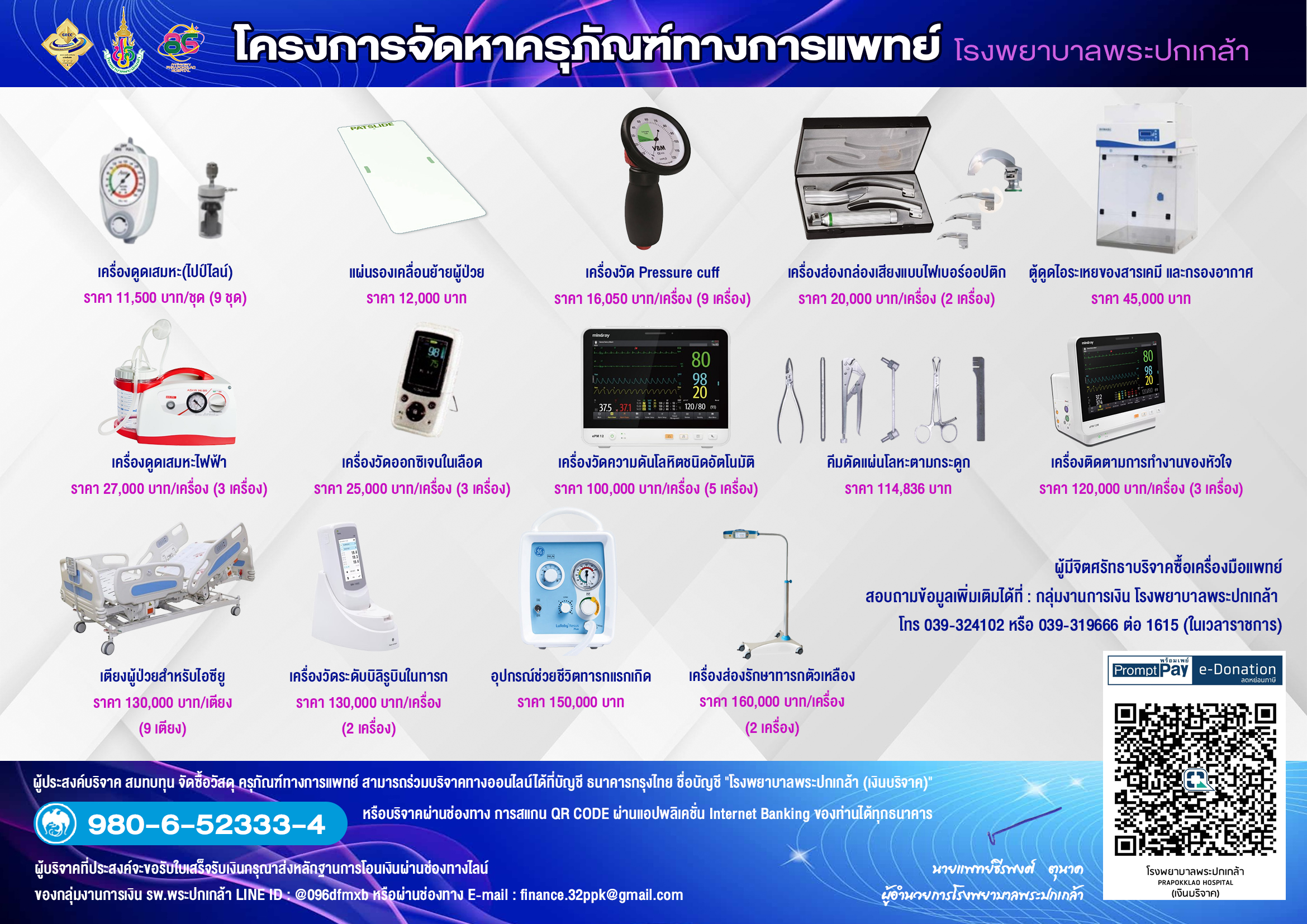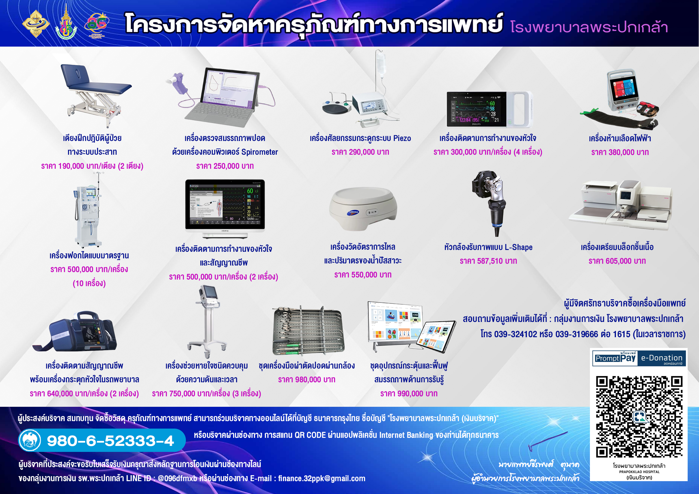 ชื่อบัญชี “โรงพยาบาลพระปกเกล้า(เงินบริจาค)” 980-6-52333-4